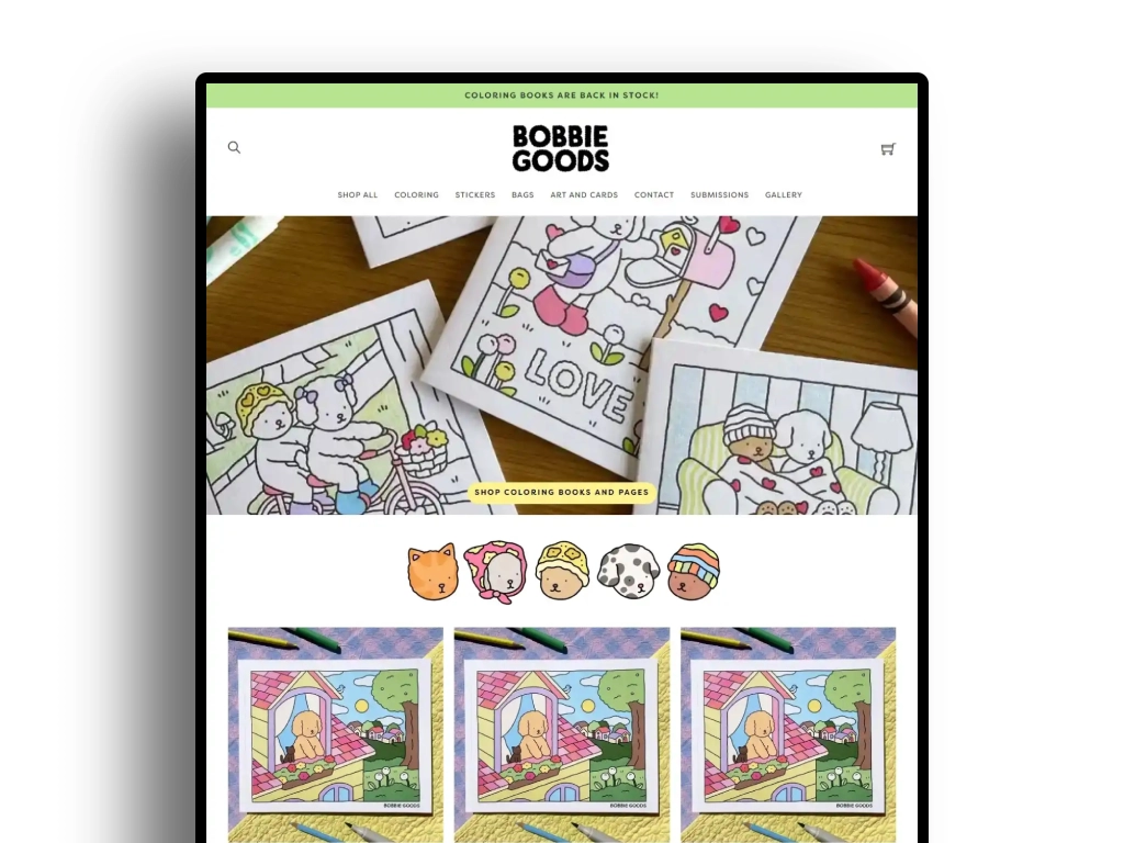 Bobbie Goods- An Ecom Store that caters for kawaii and pastel-core coloring books